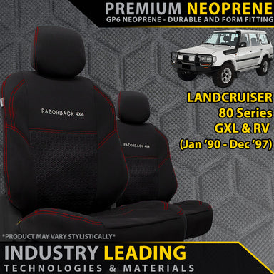View full detailsComfortable and Durable Covers Tailor Made to Fit Your 80 Series GXL Made from Genuine Sakimotto Neoprene: Soft, comfortable and stylish. Ou...