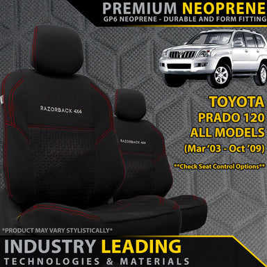 View full detailsComfortable and Durable Covers Tailor Made to Fit Your Prado 120 Made from Genuine Sakimotto Neoprene: Soft, comfortable and stylish. Our neopr...