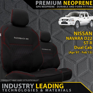 View full detailsComfortable and Durable Covers Tailor Made to Fit Your Navara D22 Made from Genuine Sakimotto Neoprene: Soft, comfortable and stylish. Our neopre...