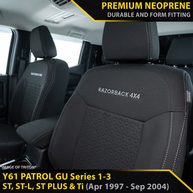 View full detailsComfortable and Durable Covers Tailor Made to Fit Your Patrol GU Made from Genuine Sakimotto Neoprene: Soft, comfortable and stylish. Our neoprene ...