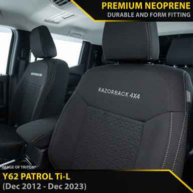 View full detailsComfortable and Durable Covers Tailor Made to Fit Your Patrol Y62 Ti-L Made from Genuine Sakimotto Neoprene: Soft, comfortable and stylish. Our n...