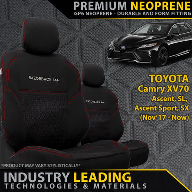 View full detailsComfortable and Durable Covers Tailor Made to Fit Your Camry XV70 Made from Genuine Sakimotto Neoprene: Soft, comfortable and stylish. Our neoprene...