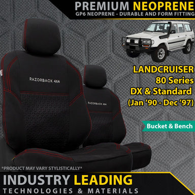 View full detailsComfortable and Durable Covers Tailor Made to Fit Your 80 Series Made from Genuine Sakimotto Neoprene: Soft, comfortable and stylish. Our neo...